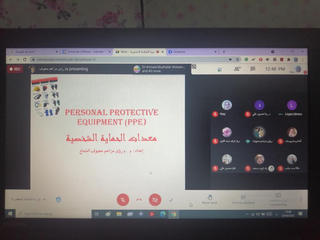 برعاية السيد رئيس جامعة الموصل، وبإشراف السيدة عميد كلية التربية للبنات أقام قسم الكيمياء دورته العلمية الالكترونية الموسومة بـ”مواقف وممارسات سلامة المختبرات في البحوث الكيميائية”، وذلك للمدة 20-22/ نيسان /2021، وبمشاركة اكثر من 50 شخصاً من مختلف كليات الجامعة، فضلاً عن استهداف طلبة الدراسات العليا والباحثين لاعطائهم فكره عن عدد من المبادئ التوجيهية الاساسية التي يجب على الباحث معرفتها والعمل بها اثناء تواجده في المختبر. شملت موضوعات المحاضرات مخاطر المواد الكيمياوية واصنافها، وشروط تخزين المواد الكيمياوية، وطريقة التعامل مع الاجهزة المشعة داخل المختبر، والاسعافات الاولية وطرق الوقاية من الحوادث، ورموز السلامة في المختبرات ومعانيها، بالاضافة الى المعرفة الكاملة بمعدات الوقاية الشخصية الواجب ارتدائها اثناء الدخول للمختبر، وايضا كيفية التعامل مع النفايات بشكل آمن، وإستخدام الحاسوب داخل المختبر واختتمت الدوره بتوضيح البروتوكلات المتبعة في المختبرات العلمية في دول العالم المتقدمة.شارك في القاء المحاضرات كلآ من: م.د.لقاء ادريس سعيد،م.د.هدى احمد عبد،م.د.امل محسن، م.د.رند ارشد، م.م.رؤى مزاحم، م.د.رنا تحسين، م..د.رنا فاضل، م.م.هبه علي طه، م . زينة اسامة، م.م.هالة سعد جاسم.