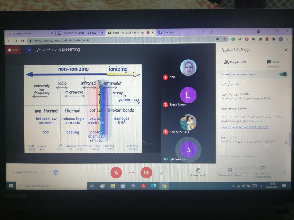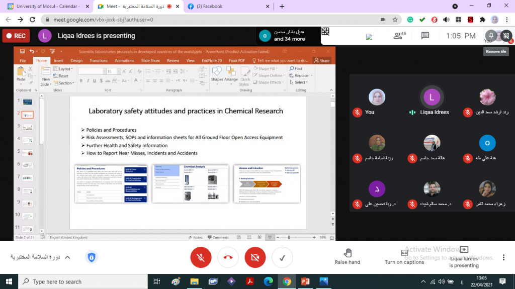 قسم الكيمياء يقيم الدورة الالكترونية “مواقف وممارسات سلامة المختبرات في البحوث الكيميائية”
