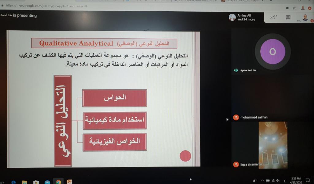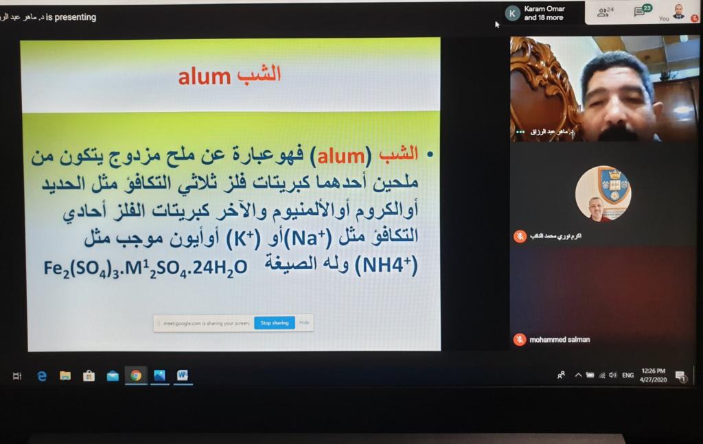 قسم الكيمياء يقيم دورة تدريبية تطويرية إلكترونية لمدرسي مديرية تربية نينوى