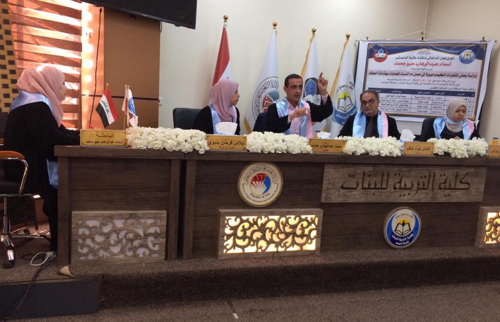 قسم الكيمياء يناقش رسالة الماجستير (دراسة بعض المتغيرات الكيموحيوية في مصل دم النساء المصابات بهشاشة العظام)
