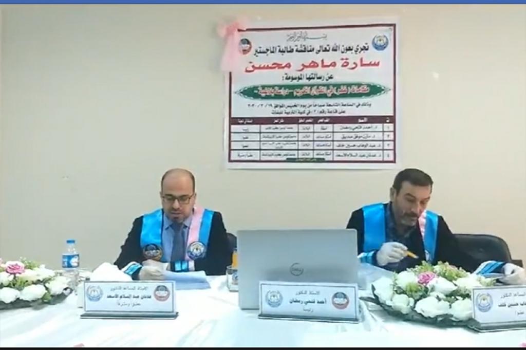 قسم اللغة العربية / كلية التربية للبنات يناقش رسالة الماجستير الموسومة بـ”مقامات غ ف ر في القرآن الكريم – دراسة بلاغية” إلكترونياً
