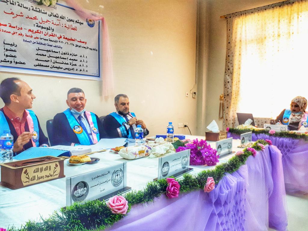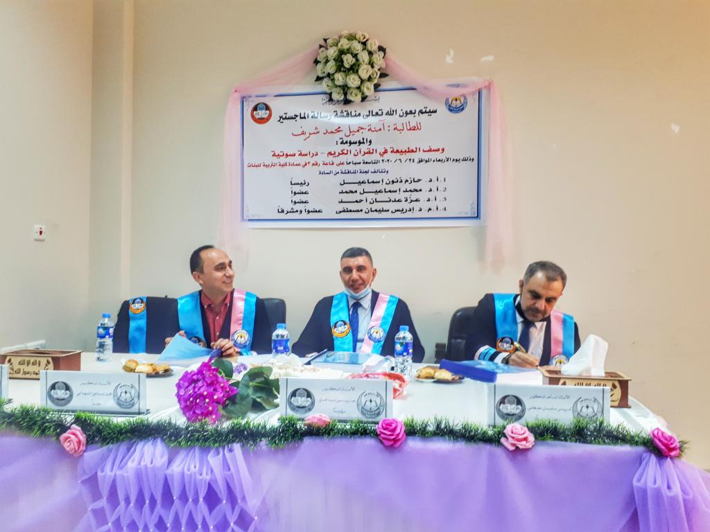 قسم اللغة العربية كلية التربية للبنات يناقش رسالة ماجستير بعنوان (وصف الطبيعة في القرآن الكريم- دراسة صوتية)