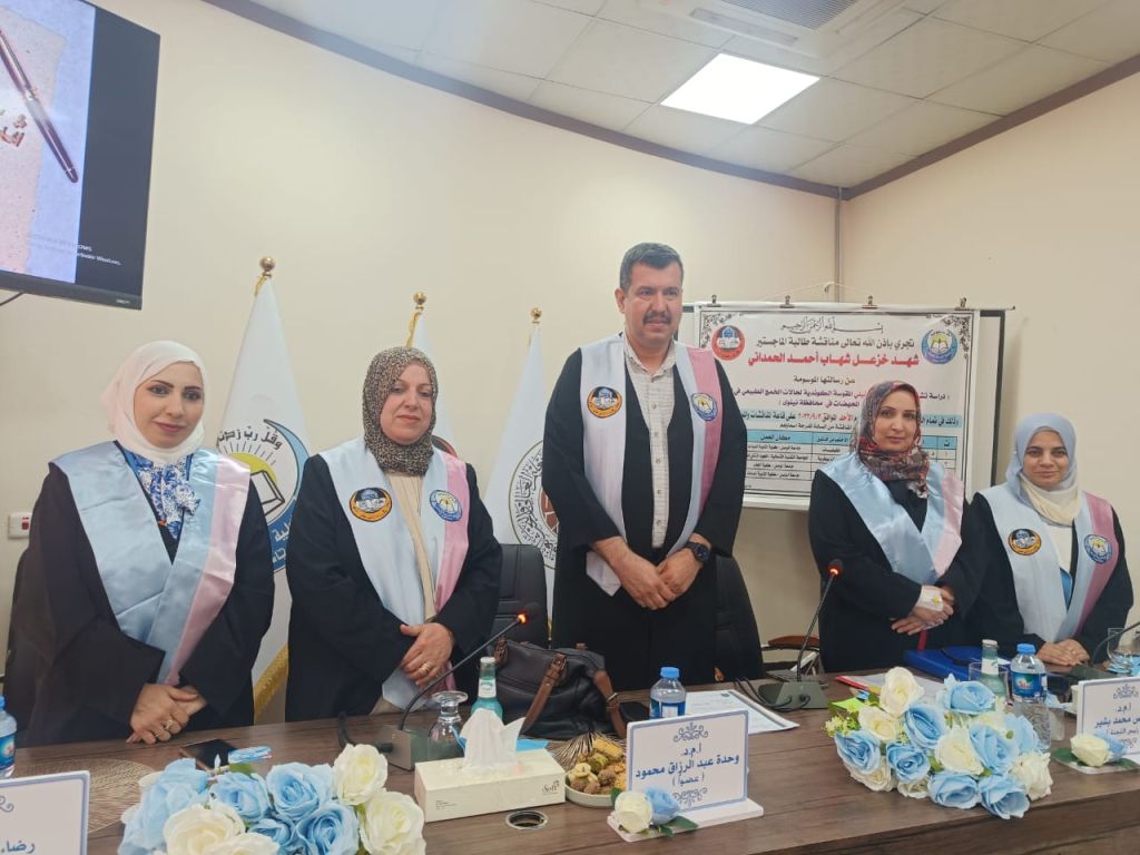 وبعد مناقشة علمية رصينة وسماع دفاع الباحثة عن رسالتها، تم قبول الرسالة ومنح شهادة الماجستير وبتقدير جيد جداً.
