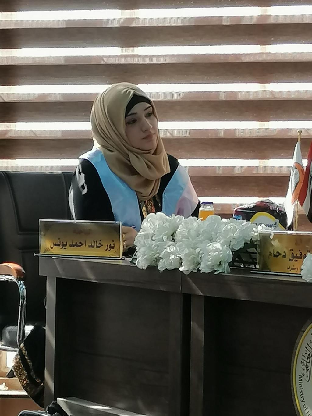 ناقش قسم اللغة العربية رسالة الماجستير الموسومة بـ(اقتران همزة الاستفهام بالنفي في القرآن الكريم – دراسة دلالية)، وذلك يوم الأربعاء الموافق ٢٩ أيلول ٢٠٢١، وقد تناولت الطالبة (نور خالد أحمد يونس) فيرسالتها ظاهرة محددة في القرآن الكريم وهي دخول همزة الاستفهام على ادوات النفي (لم ، لن ، لا، ليس) ، وهي ظاهرة اختصت بها الهمزة (أم الباب) دون سائر أخواتها من أدوات الاستفهام الاخرى و يهدف البحث الى: كشف القضايا الجمالية لاقتران الاستفهام (الهمزة) بالنفي من حيث الاغراض البلاغية التي تخرج من الحقيقة الى المجاز والتعرف على ما ينطوي تحتها من دلالات خفية ومعانٍ مختلفة ، وشرح المعاني البلاغية لهمزات الاستفهام و يخرجها من اكمامها الاصطلاحية فتبين معنى التقرير والانكار والتعجب والتقريع والسخرية والاستهزاء و هكذا بقية المعاني .واقتضت طبيعة البحث اعتماد المنهج القائم على التحليل والبلاغة ، والاحصاء في تناول آيات القرآن الكريم .وقد جاء البحث في مقدمة وتمهيد وثلاثة فصول ، تحدثت في المقدمة عن سبب اختياري هذا الموضوع و خطة البحث ، وتحدثت في التمهيد عن مصطلحات ( بين يدي الرسالة) ، و خصصت الفصل الاول للحديث عن الاستفهام المنفي بـ(لم ، لن ) ، كما خصصت الفصل الثاني لدراسة الاستفهام المنفي بـ(لا) ، وتحدثت في الفصل الثالث عن الاستفهام المنفي بـ(ليس) .و تألفت لجنة المناقشة من الأساتذة :1. أ.د. محمد ذنون يونس …..رئيسا2. أ.د. مازن موفق صديق …..عضوا3. أ.م. د. منير محمد دحام …..عضوا4. أ.د. معن توفيق دحام …عضوا ومشرفاوبعد مناقشة مستفيضة اجيزت الرسالة بتقدير جيد جدا عالمبارك للطالبة ومشرفها وقسم اللغة العربية خصوصا وكلية التربية للبنات عموما هذا المنجز العلمي المتميز