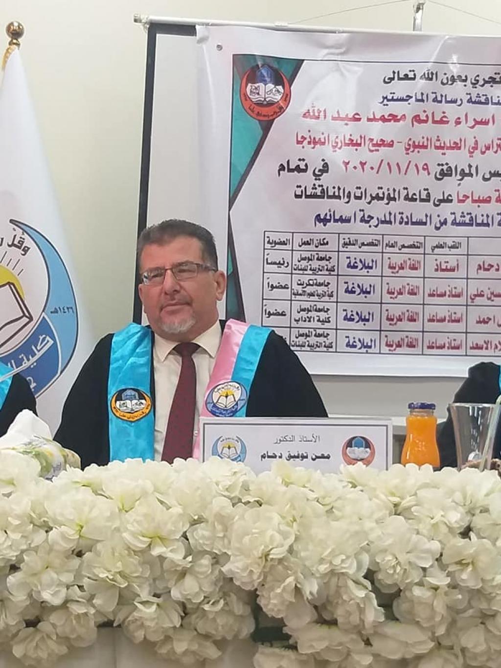 تمت مناقشة طالبة الماجستير (إسراء غانم محمد عبدالله) في رسالتها الموسومة بـ(الاحتراس في الحديث النبوي – صحيح البخاري أنموذجا)، في قسم اللغة العربية / كلية التربية للبنات، يوم الخميس الموافق ١٩-١١-٢٠٢٠، على قاعة المؤتمرات والمناقشات في الكلية.تناولت الرسالة تميز اللغة العربية بخصائص عدّة والتي جعلتها متفوقة عن سائر اللغات الأخرى، من ذلك ديمومتها وحيويتها على مرّ العصور، فضلاً عن قوة أساليبها، وتنوع طرقها ووفرتها اللغوية، فضلاً عن إعجازها البلاغي الذي يأتي الاحتراس من أهم طرقه، إذ يُعد أسلوباً من أساليب العربية في الكلام، وفناً من فنون التعبير فيها، ووسيلة بيانية لا تظهر إلا في الكلام الرفيع. فهو رافد مهم من روافد الإعجاز البلاغي له أهمية واضحة ووظيفة بارزة في تهذيب الكلام وصيانته، ودفع توهم قد يحصل لولا ذكره، فضلاً عن إزالة اللَبس وتوجيه مسار المعنى وإكماله, فضلا عن غيرها من أغراضه البلاغية. فهو فن قائم في أساسه على التحرز من الخطأ الذي قد يفهم لولاه من الكلام وهذا مرجع البلاغة العربية، فليس الاحتراس زيادة اطنابية في الكلام لا فائدة منها، إنما هو من مقتضيات النظم ومتطلبات المقام.