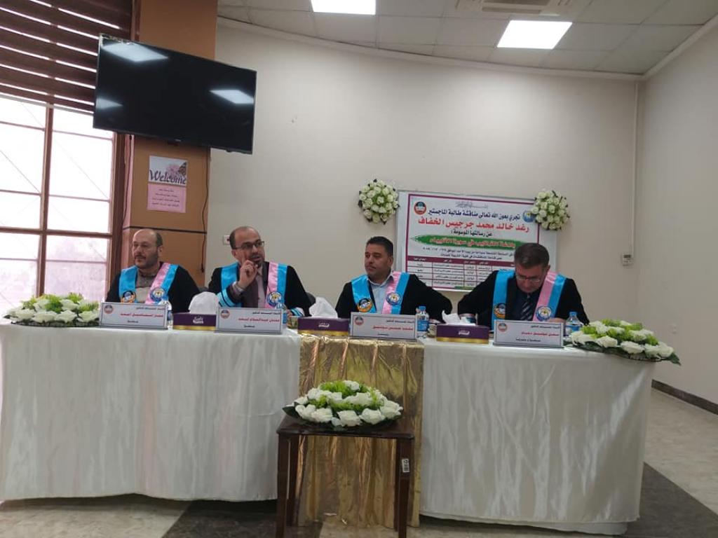 جرت بعون الله تعالى في جامعة الموصل بكلية التربية للبنات / قسم اللغة العربية مناقشة طالبة الماجستير رفد خالد محمد عن رسالتها الموسومة بـ(بلاغة التراكيب في سورة الأنبياء)، يوم الأحد الموافق ٢٩-١٢-٢٠١٩، على قاعة أ.د. خولة آل فليح، وبعد مناقشة علمية رصينة من قبل الاساتذة والباحثة، اجيزت الرسالة بدرجة مستوفٍ.و تألفت لجنة المناقشة من الأساتذة :1. أ.م.د. محمد حسين توفيق …..رئيساً2. أ.م.د. عدنان عبد السلام الاسعد …عضواً3. أ.م.د. عمار إسماعيل محمد…..عضواً4. أ.م.د. معن توفيق دحام …. عضوا ومشرفافهنيئا للطالبة ومشرفها هذا المنجز العلمي المتميز