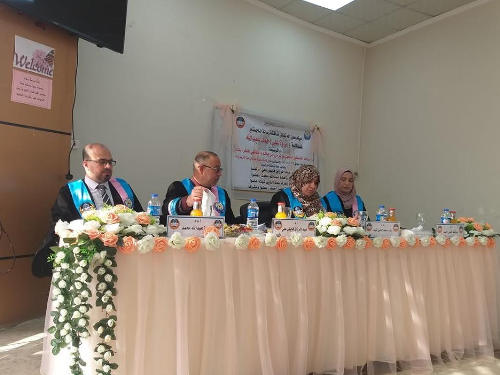 بحضور الأستاذ الدكتور منير سالم البدراني مساعد رئيس الجامعة للشؤون العلمية والأستاذ الدكتورة ضمياء علي عبد الله عميد كلية التربية للبنات جرت في جامعة الموصل بكلية التربية للبنات / قسم اللغة العربية مناقشة طالبة الماجستير مروة علي أحمد عن رسالتها الموسومة بـ(مباحث المصطلح النحوي في شرحي ابن هشام والفاكهي لقطر الندى)، وذلك في صباح يوم الأربعاء الموافق ٢٦-٢-٢٠٢٠ على قاعة أ.د. خولة آل فليح وقد اجيزت الرسالة بتقدير ممتاز.