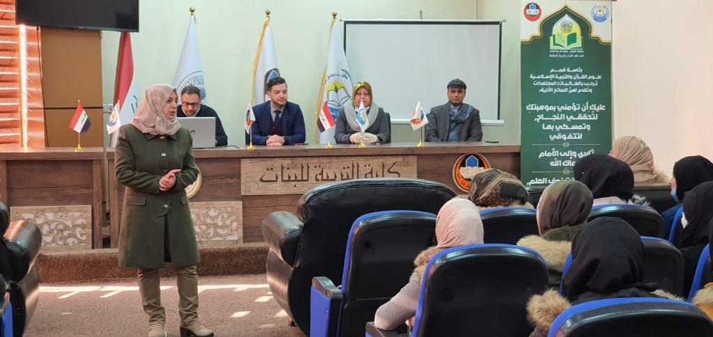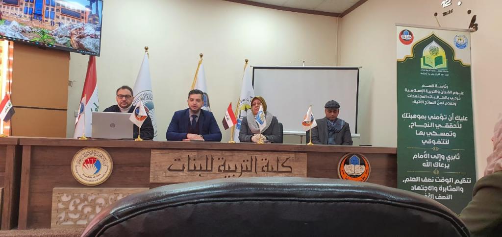 ضمن توجيهات وزارة التعليم العالي والبحث العلمي، احتفل قسم علوم القرآن والتربية الإسلامية بيوم التعليم العالمي والذي يوافق 24 كانون الثاني، اذ استقبل أعضاء مجلس قسم علوم القرآن فضلاً عن رئيسه طالبات المرحلة الأولى، مرحباً بهم في مرحلتهتّ الجامعية، مع اعطائهنّ توجيهات ونصائح بخصوص الدراسة الالكترونية، اذ أثنى الاستاذ المساعد الدكتور خالد عصام خليل رئيس القسم على اختيار الطالبات لهذا القسم، الذي يعلّم علوم القرآن والتربية الاسلامية، تلته الاستاذ المساعد الدكتورة زينب حكمت عبدالرزاق التي وجهت الطالبات الى الالتزام بحضور المحاضرات الالكترونية والاستعداد لها وتوفير متطلباتها، كما ذكر الاستاذ المساعد الدكتور طه عبدالله محمد أهمية دراسة العلوم الشرعية، أعقبته الاستاذ المساعد الدكتورة أزهار يحيى قاسم التي شجعت الطالبات على التفوق والنجاح والالتزام بالدروس، بعدها ألقى الاستاذ المساعد الدكتور محمد واجد محاضرة عن كيفية اعداد البريد الالكرتوتي والانضمام الى الصف الالكتروني، واستقبال المحاضرات وارسال الواجبات بشكل الكتروني، واختتم الاستاذ المساعد الدكتور صالح إبراهيم صالح رئيس القسم السابق بتوجيهات عامة للطالبات مباركاً اياهنّ المرحلة الجامعية الجديدة.