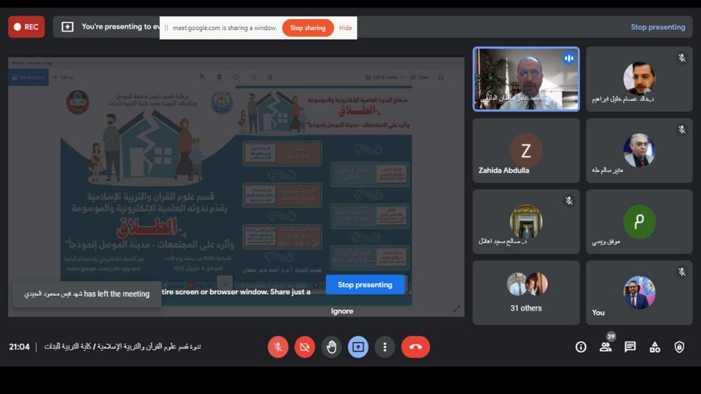 قسم علوم القرآن والتربية الاسلامية.. يقدم الندوة العلمية الالكترونية عن احدى المشكلات الاجتماعية في مدينة الموصل