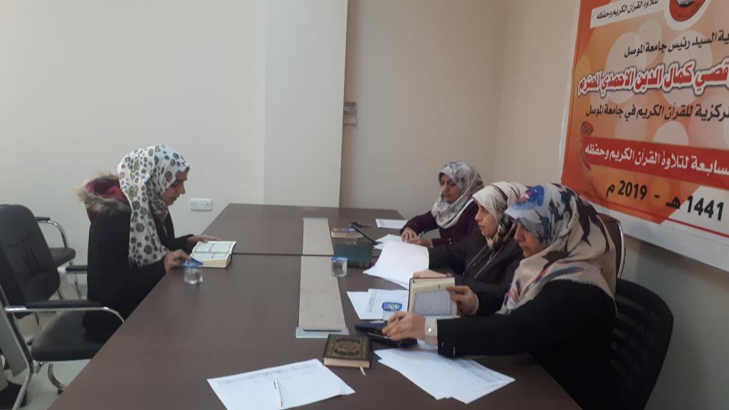 برعاية السيد رئيس جامعة الموصل الاستاذ الدكتور قصي كمال الدين الاحمدي، بدأت اعمال المسابقة المركزية السابعة لتلاوة القرآن الكريم وحفظه، اذ استضافت كلية التربية للبنات اللجنة التحكيمية الخاصة بالاناث برئاسة م.م. رزان محمد جميل الحبال التدريسية في قسم علوم القرآن والتربية الاسلامية، كان المحور الاول هو محور تلاوة القرآن الكريم، وبواقع يومين 25-26 تشرين الثاني 2019، اما بالنسبة لمحور الحفظ فسيكون يومي 27-28 تشرين الثاني 2019.