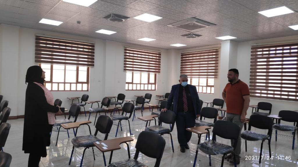 زار السيد مساعد رئيس الجامعة للشؤون العلمية أ.د. منير سالم طه كلية التربية للبنات للاطلاع على استعدادات الكلية لاستقبال الطالبات لاداء الامتحانات النهائية الحضورية، اذ اكدت السيدة عميد الكلية استكمال الاستعدادات للامتحانات الحضورية النهائية، وذلك من خلال تنظيم حملات مكثفة لتعفير وتعقيم جميع مفاصل الكلية وقاعاتها الدراسية ومختبراتها التعليمية واروقتها واللجان اللامتحانية وجميع الاماكن التي يرتادها الطالبات، وذلك انسجاما مع تعليمات وزارة التعليم العالي والبحث العلمي وتوصيات لجنة الصحة والسلامه الوطنية وتجنباً ومنعاً للعدوى من فايروس كورونا فضلاً عن توفير مستلزمات الجانب الصحي من الكمامات والمعقمات واجهزة قياس الحرارة ومياه الشرب الصحية وغيرها من المستلزمات التي توفر اجواء صحية وآمنة للطالبات.