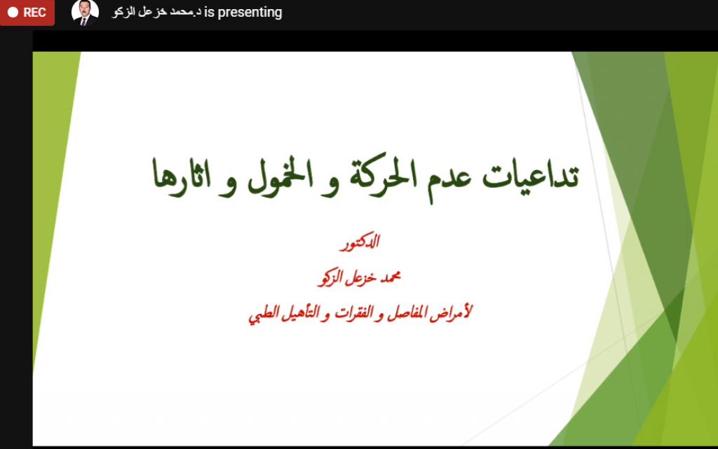برعاية السيد رئيس جامعة الموصل أ.د. قصي الأحمدي المحترم وبإشراف السيدة عميد كلية التربية للبنات أ.د. ضمياء علي عبدالله المحترمة وبإدارة السيد رئيس قسم التربية البدنية وعلوم الرياضة أ.م.د. ثابت إحسان حمودات المحترم أقام القسم ندوته العلمية الالكترونية والموسومة “الممارسات الرياضية اثناء الحجر المنزلي طريقاً لمواجهة جائحة كورونا” وذلك يوم الخميس 14 آيار 2020، وبإستخدام تطبيق Google-MEET، اذ تضمن برنامج الندوة الذي قدمه بابداعه المعهود المدرس محمود عبدالخالق البكوع، فابتدأ كلمة الافتتاحية للسيدة عميد كلية التربية للبنات، ثم المحاضرة الاولى والموسومة بـ”تداعيات عدم الحركة والخمول وآثارها” للطبيب المختص محمد خزعل الزكو، الذي تكلم عن اهمية الحركة بالنسبة لمفاصل الجسم والعضلات، بعد ذلك كانت المحاضرة الثانية والمعنونة بـ”استخدامات تكنلوجيا الإدارة الرياضية الحديثة في الحجر الصحي” للاستاذ الدكتور وليد خالد همام النعمة من قسم التربية البدنية وعلوم الرياضية / كلية التربية الاساسية، الذي تناول أهمية التنكلوجيا الحديثة واستخدامتها في الادارة الرياضية ضمن العطلة الوقائية، اعقبتها المحاضرة الثالثة والموسومة بـ”تشتت الانتباه _ كيفية القياس والعلاج / تطبيقات في الحجر المنزلي” للاستاذ الدكتورة الاء عبد الله حسن / قسم التربية البدنية وعلوم الرياضة / كلية التربية للبنات التي تكلمت عن اسباب تشتت الانتباه وطرق علاجه، بعدها كانت المحاضرة الرابعة والموسومة بـ”اساليب مواجهة الضغوط النفسية من جراء فايروس كورونا خلال العزل المنزلي” للاستاذ الدكتور نبراس يونس محمد / قسم التربية البدنية وعلوم الرياضة / كلية التربية للبنات، الذي بين اساليب مواجهة الضغوط النفسية خاصة في مرحلة العطلة الوقائية، ثم جاء دور المحاضرة الخامسة والمعنونة بـ”التغذية وممارسة الرياضة المنتظمة وتأثيراتها الفسيولوجية” قدمتها أ.م.د شذى حازم كوركيس / قسم التربية البدنية وعلوم الرياضة / كلية التربية للبنات، التي تناولت فيها اهمية التغذية وعلاقتها بممارسة الرياضة، قدمت بعدها المحاضرة السادسة والموسومة بـ”انشطة رياضية مقترحة للتخفيف من أثار الحجر المنزلي” للاستاذ المساعد الدكتور علاء الدين فيصل / قسم التربية البدنية وعلوم الرياضة / كلية التربية للبنات، الذي اقتراح فيها أنواع من الانشطة الرياضية للتخفيف من آثار الحجر المنزلي، بعدها كانت المحاضرة السابعة والموسومة بـ”الرياضة النسائية وأسس تطبيقاتها المنزلية” للمدرس المساعد زينب مصطفى ذنون / قسم التربية البدنية وعلوم الرياضة / كلية التربية للبنات، التي تكلمت عن انواع معينة للرياضة مخصصة للنساء، أعقبتها المحاضرة الثامنة والمعنونة بـ”ادارة الوقت وتجديد التفكير الابداعي بين الاستثمار الرياضي والهدر” للاستاذ المساعد الدكتور ثابت احسان احمد حمودات / قسم التربية البدنية وعلوم الرياضة / كلية التربية للبنات، الذي تناول ادارة الوقت وتجديد التفكير الابداعي، ومسك الختام كان مع المحاضرة الموسومة بـ”رياضة الاطفال والالعاب الصغيرة” للمدرس رشا قيدار عبد الحميد / قسم التربية البدنية وعلوم الرياضة / كلية التربية للبنات، التي اكدت على اهمية رياضة الاطفال واقتراح العاب مناسبة لهم، وفي ختام الندوة استمع المحاضرون الى مداخلات المشاركين والاجابة عن اسئلتهم، والذين أبدوا تفاعلاً كبيراً مع محاضرات الندوة.