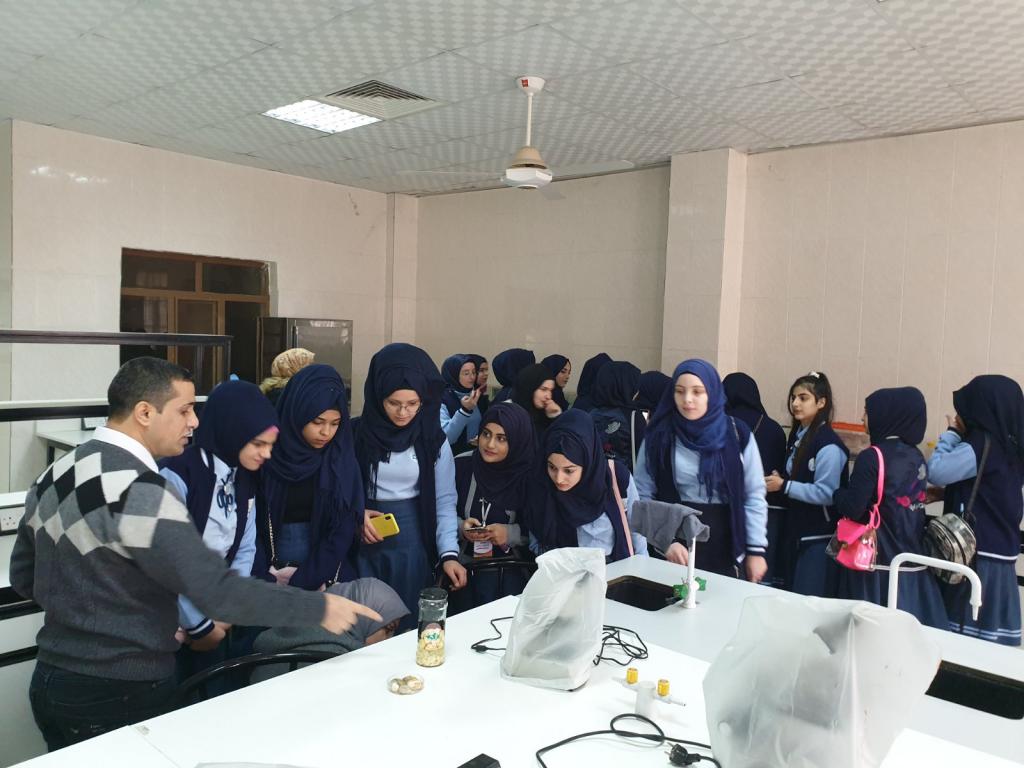 ضمن تأكيدات السيد رئيس جامعة الموصل أ.د. قصي الأحمدي في التواصل مع المجتمع وضرورة التعاون المستمر مع مديرية تربية نينوى بما يخدم المسيرة التعليمية والعلمية، استضاف قسم الكيمياء في كلية التربية للبنات يوم الاربعاء الموافق ٤ / ١٢ / ٢٠١٩ طالبات ثانوية الشرقية الاهلية للبنات، اذ كان باستقبال الطالبات أ.د. رضاء ناظم حمو و.عميد كلية التربية للبنات، وأ.م.د. فرحة خلف عمر رئيس قسم الكيمياء، وم.د. فؤاد سالم اسماعيل رئيس قسم علوم الحياة، وأ.د. ضمياء علي عبد الله رئيس قسم التربية البدنية وعلوم الرياضة، وم.د. احمد مظفر محمد مسؤول العلاقات العامة، وعدد من تدريسي وتدريسيات قسم الكيمياء الذين رحبوا اشد ترحيب بالتدريسيات المرافقات للطالبات وبالطالبات.وضح السيد مسؤول العلاقات العامة للطالبات طبيعة النظام الدراسي للكلية وتعريفهم باقسامها الخمسة، فضلا” عن توضيح اهمية علم الكيمياء ودوره في الحياة فالكون كله كيمياء، ومبينا” لهم ايضا فروع هذا العلم وربطها بالعلوم الأخرى.بعدها قامت الطالبات بجولة علمية ميدانية في بعض اروقة عمادة الكلية شملت قسم الكيمياء ومختبراته العلمية بغية اطلاعهم على بعض التجارب المختبرية التي اجريت لهم من قبل عدد من تدريسيات القسم. ثم تبعتها جولة علمية في مختبرات قسم علوم الحياة برفقة السيد رئيس القسم وعدد من تدريسيات القسم لتعريفهم بالقسم واطلاع الطالبات على مختبرات القسم وعلى بعض النماذج من الكائنات الحية. ثم اختتمت الزيارة بجولة ميدانية ترفيهية في قاعة التربية الرياضية لكليتنا وكانت بصحبة السيدة عميد الكلية ورئيس قسم التربية البدنية وعلوم الرياضية ومقرر القسم. وفي نهاية الزيارة قدم الوفد الزائر وهم كل من الست رانيا عليوي فتحي والست مريم اياد سعيد والست نور طارق واعلامي المدرسة السيد محمد شفاء وطالبات الثانوية شكرهم وتقديرهم لرئاسة جامعة الموصل وعمادة كلية التربية للبنات وقسم الكيمياء لإتاحة هذه الفرصة لهم ولحسن الاستقبال.