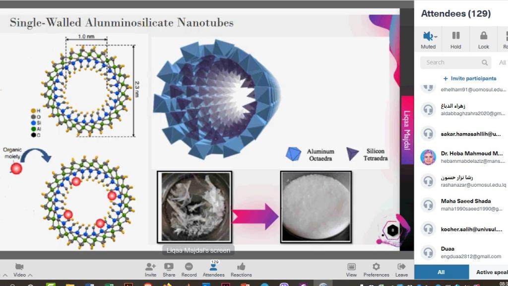 ضمن النشاطات العلمية الدولية التي تقدمها كلية التربية للبنات، وبرعاية الاستاذ الدكتور نبيل عبدالكاظم صاحب وزير التعليم العالي والبحث العلمي المحترم، وبإشراف الاستاذ الدكتور قصي كمال الدين الأحمدي رئيس جامعة الموصل المحترم، أقام قسم الكيمياء / كلية التربية للبنات المؤتمر الدولي العلمي الافتراضي الثاني لعلم النانوتكنلوجي وتطبيقاته، والموسوم بـ”نسعى لعلم النانو وتطبيقاته من أجل غدٍ أفضل”، وذلك يومي الاربعاء والخميس الموافقان 10-11 شباط 2021، وبمشاركة دولية من اساتذة اختصاص من مختلف جامعات الدول العربية والعراقية، تناول المؤتمر المجالات (الطبية، الهندسية، العلوم التطبيقية، الصناعية، الزراعية)، افتتح المؤتمر الاستاذ الدكتور منير سالم طه البدراني مساعد رئيس الجامعة للشؤون العلمية بكلمة ترحيبية بالسيدات والسادة المشاركين، بعدها بدأت فعاليات المؤتمر وحسب المنهج المرفق، وفي اليوم الثاني والاخير للمؤتمر ألقت الاستاذ المساعد الدكتورة ابتهاج زكي سليمان (رئيس قسم الكيمياء) التوصيات التي خَلُص لها المؤتمر:1- ضرورة الاهتمام بزيادة الوعي بأهمية علم النانوتكنولوجي فى المحافل الدولية من اجل تبادل الخبرات بين الباحثين العرب والأجانب سواء بأبحاث علمية أو محاضرات عامة . / وزارة التعليم العالي والبحث العلمي.2- إقامة الموتمرات والندوات الدولية والمحلية دورياً للاستفادة من نتائج الأبحاث التى استخدمت علم النانو فيها وخاصة في مجالات الطب والصناعة / وزارة التعليم العالي والبحث العلمي ووزارة الصحة ووزارة الصناعة.3- ضرورة ادخال تقنية النانو في المناهج الدراسية للمراحل الاولية والعليا لما لهذه التقنية من مستقبل وباعتبارها من اهم مميزات تقنية المستقبل / وزارة التعليم العالي والبحث العلمي.4- الدعوة إلى إقامة المؤتمر العلمي الدولي الثالث لعلم النانوتكنولوجي وتطبيقاته في كلية العلوم للبنات/ جامعة بغداد.ومن الجدير بالذكر ان المؤتمر المذكور هو أول مؤتمر علمي دولي باختصاص النانوتكنلوجي يعقد في جامعة الموصل.