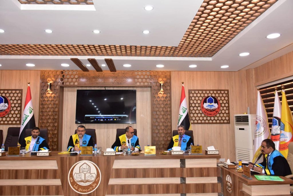 ترأس لجنة المناقشة الاستاذ الدكتور وليد خالد همام النعمة، وعضوية كل من الاستاذ المساعد الدكتور خالد محمود عزيز، والاستاذ المساعد الدكتور محمد احمد صابر، وعضوية واشراف كل من الاستاذ المساعد الدكتور ثابت احسان احمد والاستاذ المساعد الدكتورة بثينة حسين علي.
