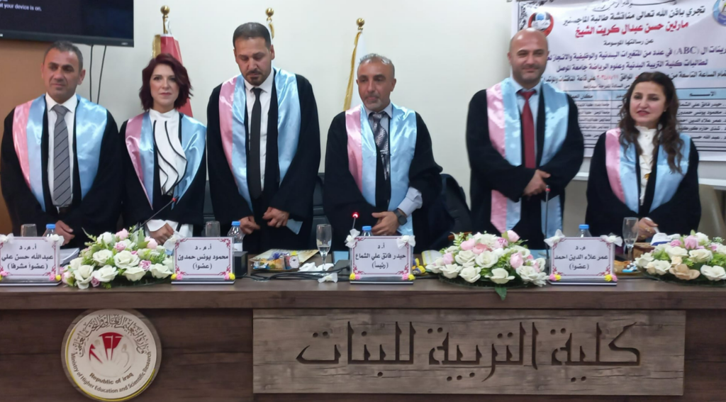 ترأس لجنة المناقشة أ.د. رباح علي خليل، وعضوية كل من أ.م.د. نهى محمد يحيى، وأ م د حسين حبيب مصطفى، وعضوية وإشراف أ. د. ابتهاج زكي سليمان، وأ. د. محمد محمود حسين.