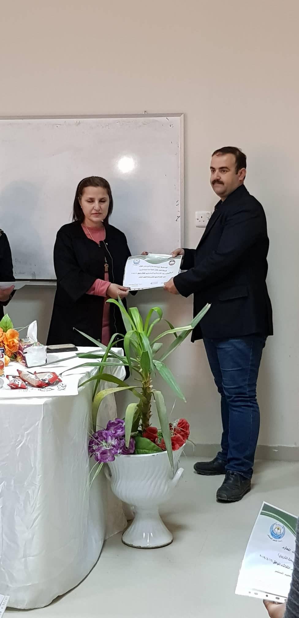 تنفيذاً لتوجيهات السيد رئيس الجامعة أ.د. قصي الاحمدي المحترم حول تعاون الجامعة مع المؤسسة العلمية والتعليمية في المجتمع الموصلي، وتحت الاشراف المباشر من عمادة كلية التربية للبنات متمثلة بالسيدة عميد الكلية أ.م.د. زاهدة عبدالله محمد قام قسم علوم القرآن والتربية الاسلامية بإدارة الدكتور صالح ابراهيم صالح وبالتعاون مع المديرية العامة لتربية نينوى يومي الثلاثاء والاربعاء الموافقين 16-17 نيسان 2019 بورشة العمل الموسومة بـ"كيفية إعداد البحث التربوي للمرشدين والمرشدات التربويين"، اذ ألقت أ.م.د. أزهار يحيى قاسم من خلالها عدداً من المحاضرات النظرية مع تطبيقات تربوية لكل فصل من فصول البحث التربوي، فضلا عن التطبيقات الاحصائية على برنامج spss، وفي نهاية الورشة تم تقديم شهادات مشاركة لجميع المشاركين والمشاركات في الورشة من قبل السيدة عميد الكلية أ.م.د. زاهدة عبد الله محمد والسيدة معاون الشؤون الادارية أ.م.د. شذى حازم كوركيس، وقد عبر السيدات والسادة المشاركين في الورشة عن استفادتهم منها وثنائهم على الاسلوب المهني للمحاضرة أ.م.د. أزهار يحيى قاسم، وتفاعلهم مع المادة العلمية والعملية، متمنين تكرارها فضلاً عن اقامة ورش عمل في مجالات علمية اخرى.