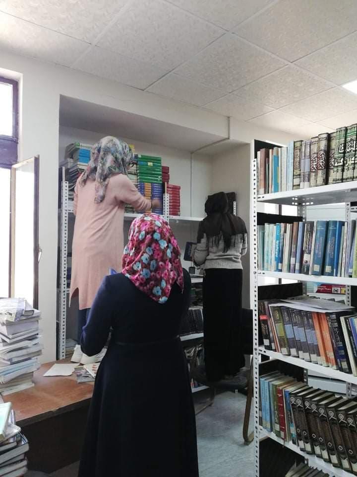 بادرت مجموعة طيبة من طالبات قسم اللغة العربية المرحلة الرابعة بمساعدة الموظفين المسؤولين عن تنظيم مكتبة الكلية وذلك في خطوة للتسريع بإستكمال العمل فيها من اجل فتحها امام الطالبلت للافادة منها في بحوثهم ودراستهم. فشكرا لهم على هذه المبادرة.