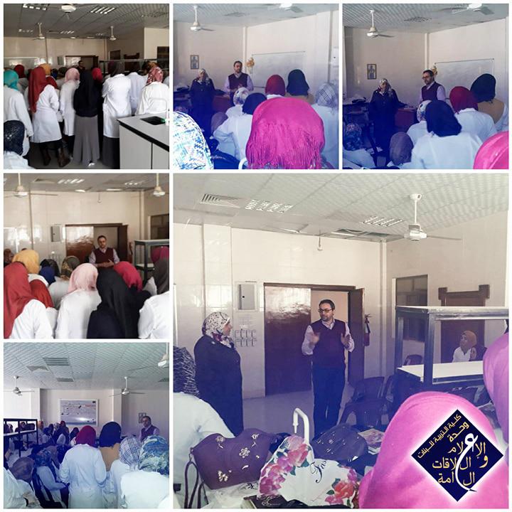 قام الدكتور محمد واجد مسؤول وحدة الاعلام في الكلية بالقاء محاضرة تعريفية بمسابقة الفنون الابداعيةيوم الاثنين 20 / 2/ 2018 وذلك فيقسمي الكيمياء وعلوم الحياة موضحاً لهم اجناس الفنون الابداعية وحث الطالبات على المشاركة في هذه المسابقة الجامعية العامة، ومن الجدير بالذكر بان كليتنا كانت تحتل المراكز الاولى في المسابقة المذكورة للسنوات السابقة.