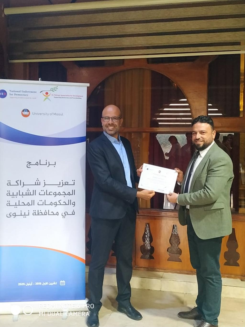 مشاركة الدكتور محمد غانم الشريف في برنامج (تعزيز شراكة المجموعات الشبابية والحكومات المحلية في محافظة نينوى)