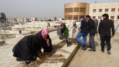 مشاركة واسعة لكوادر وطالبات كليتنا في حملة غرس وزرع الاشجار - كلية التربية للبنات