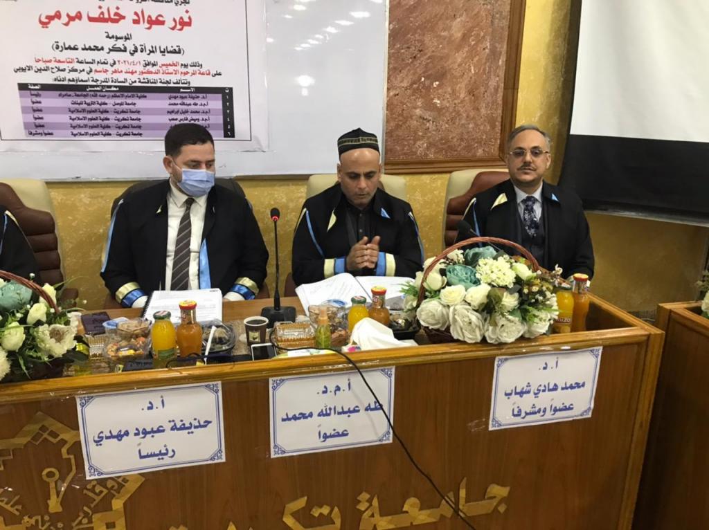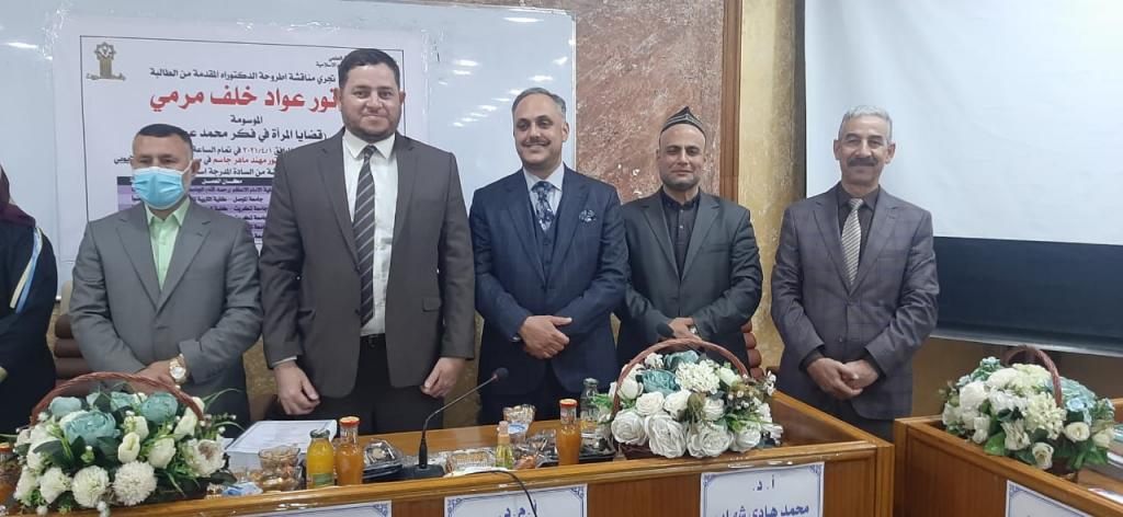 شارك الاستاذ المساعد الدكتور طه عبدالله محمد التدريسي في قسم علوم القرآن والتربية الاسلامية في لجنة مناقشة طالبة الدكتوراه “نور عواد خلف” في اطروحتها الموسومة بـ”قضايا المرأة في فكر محمد عمارة -دراسة وتحليل-” والتي اقيمت في كلية العلوم الاسلامية / جامعة تكريت، وذلك يوم الخميس الموافق 1 نيسان 2021.