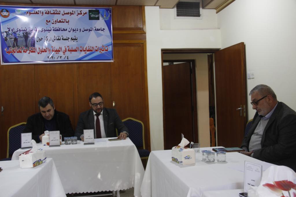 شارك الاستاذ المساعد الدكتور محمد واجد التدريسي في قسم علوم القرآن والتربية الاسلامية، في الجلسة النقاشية ضمن محور “النفايات الصلبة وتأثيراتها في البيئة والحلول المقترحة لمعالجتها” والتي تأتي ضمن دراسة يقوم بها مركز الموصل للثقافة والعلوم بالتعاون مع جامعة الموصل وديوان محافظة نينوى وفريق نينوى اولا التطوعي، وذلك يوم الاربعاء الموافق 4 آذار 2020، وبمشاركة كل من الاساتذة:- الدكتور حسن الرزو مستشار في مجلس محافظة نينوى.- الاستاذ الدكتور ليث الطعان التدريسي في قسم علوم الفيزياء- الاستاذ المساعد الدكتور طه الطيار التدريسي في كلية علوم البيئة وتقناتها- الاستاذ المساعد الدكتور شعلان عبدالقادر التدريسي في كلية العلوم السياسية- الاستاذ المساعد الدكتور ابراهيم الجلبي التدريسي في كلية الادارة والاقتصادية- الاستاذ وسام نظام رئيس الكيميائيين في مصنع جابر بن حيان- الدكتور حارث اديب التدريسي في كلية الحقوقتناولت الجلسة تعريف النفايات الصلبة، وانواعها، واضرارها البيئية، وتقديم مقترحات لايجاد حلول بمشاركة المواطن والجهات المعنية للتخلص من اضرار النفايات الصلبة.