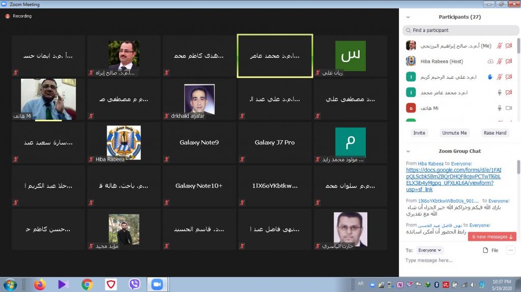 ضمن ساسية جامعة الموصل في مد جسور التعاون بين جامعات القطر، وضمن نشاطات اساتذة كلية التربية للبنات ، شارك الاستاذ المساعد الدكتور صالح ابراهيم صالح رئيس قسم علوم القرآن والتربية الاسلامية في الندوة العلمية الالكترونية التي أقامها قسم علوم القرآن والتربية الاسلامية / كلية التربية / جامعة ميسان والموسومة بـ”وباء كورونا بين حفظ النفس وحفظ الدين دراسة في الفقه والشريعة”، اذ ألقى محاضراته الموسومة “تكاملية مقاصد الشريعة وأثرها في معالجة النوازل (Covid-19) انموذجاً” عبر تطبيق ZOOM يوم الثلاثاء الموافق 19 آيار 2020م، 26 رمضان 1441هـ، تناول فيها فوائد معرفة مقاصد التشريع وأقسامها ورُتب الكليات الخمس ومذاهب العلماء فيها، وآلية تَفعيل الرؤية الحضاريَّة للمقاصد وتشغيلها في الواقع من خلال الإفادة من مناهجهم في محاكاة معطيات الحضارة الإنسانية المتشابكة، وعرضا لأهم الدراسات الحديثة محور الندوة، مع خلاصة مفادها أن العلاقة بين المقاصد في النموذج المعرفي الإسلامي هي التكاملُ لا التناقُض ولا التصارع.