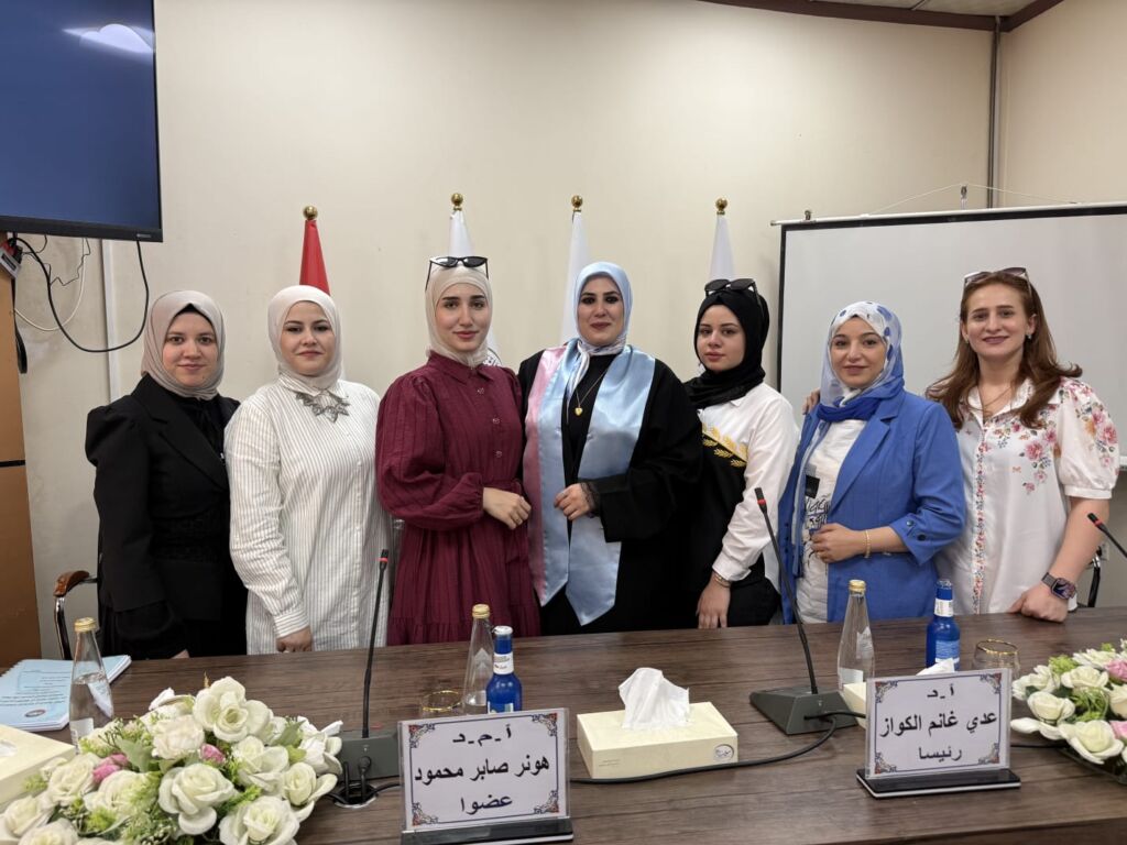 وقد حضر جانبًا من المناقشة كلٌّ من السيدة عميدة الكلية الاستاذ المساعد الدكتورة شذى حازم كوركيس، والسيد معاون العميد للشؤون العلمية، تأكيدًا على دعم الكلية للجهود البحثية الهادفة والمتميزة.