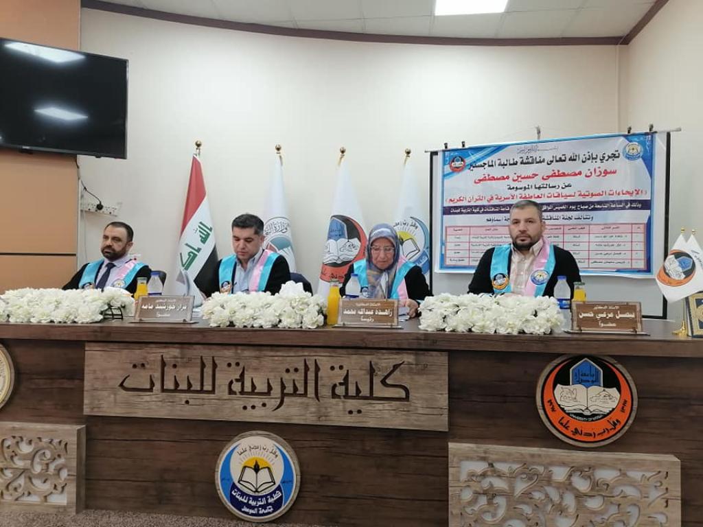 مناقشة رسالة ماجستير “الإيحاءات الصوتية لسياقات العاطفة الأسرية في القرآن الكريم” في قسم اللغة العربية