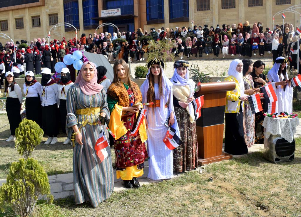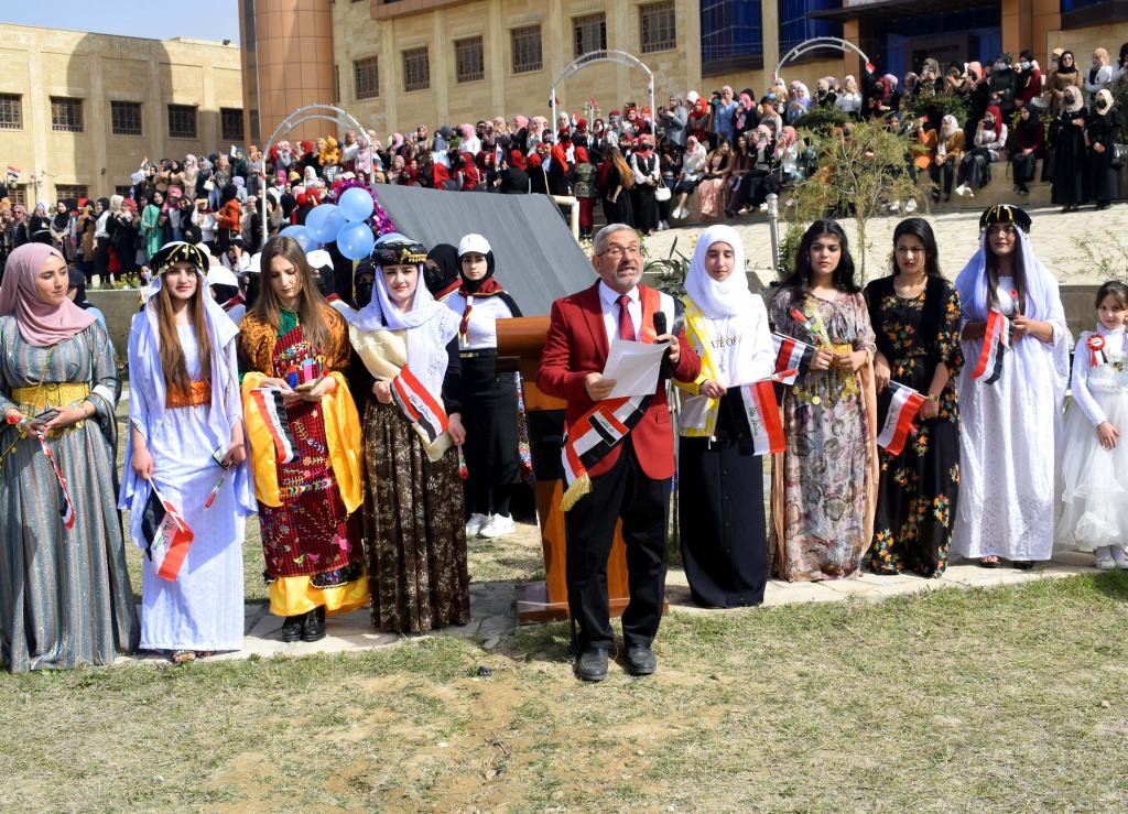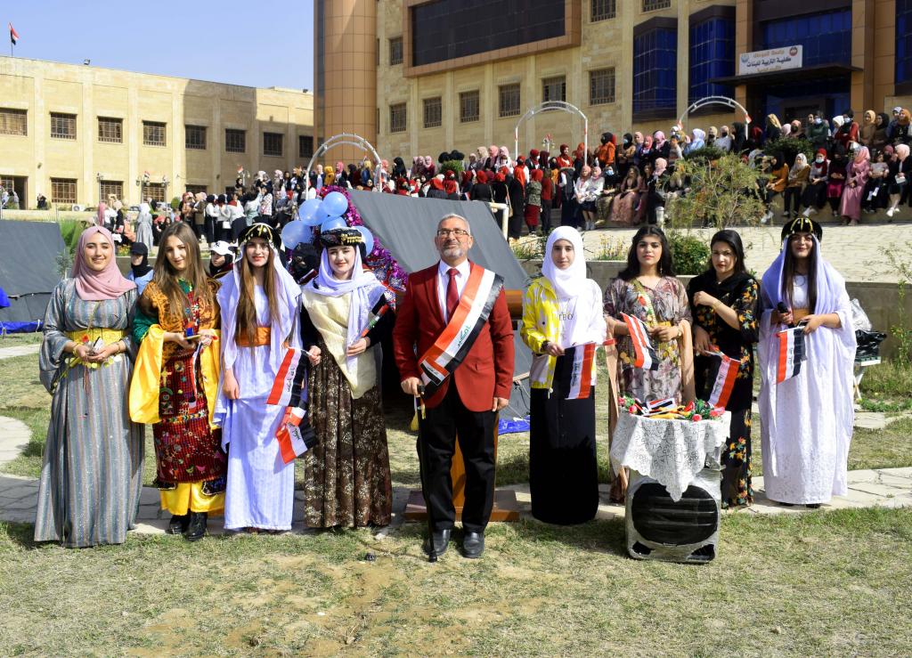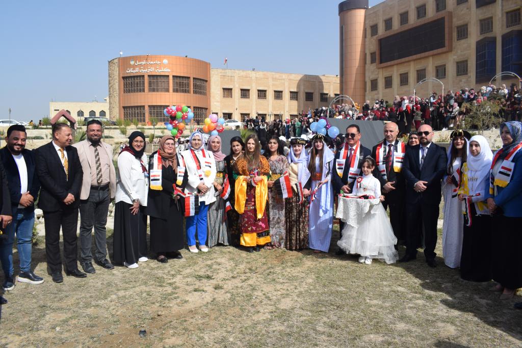 مهرجان التعايش ..في يوم ربيعي متميز وبالتزامن مع احتفالات تأسيس جامعة الموصل ، أقامت كلية التربية للبنات برعاية السيد رئيس جامعة الموصل الأستاذ الدكتور قصي كمال الدين الأحمدي مهرجانها السنوي ( التعايش السلمي ) يوم الخميس الموافق ٣١ / ٣ / ٢٠٢٢ ، في حدائق الكلية وأروقتها ..وتزين المهرجان بحضور الأستاذ الدكتور قصي الأحمدي يرافقه الأستاذ الدكتور وحيد محمود الإبراهيمي ..وتنوعت فعاليات المهرجان بنشاطات متنوعة توزعت بين معرض للكتب ، ومعارض أخرى للمهارات اليدوية والرسوم الإبداعية وأخرى عن نشاطات علمية قدمتها طالبات الكلية بأقسامها العلمية الخمسة ..