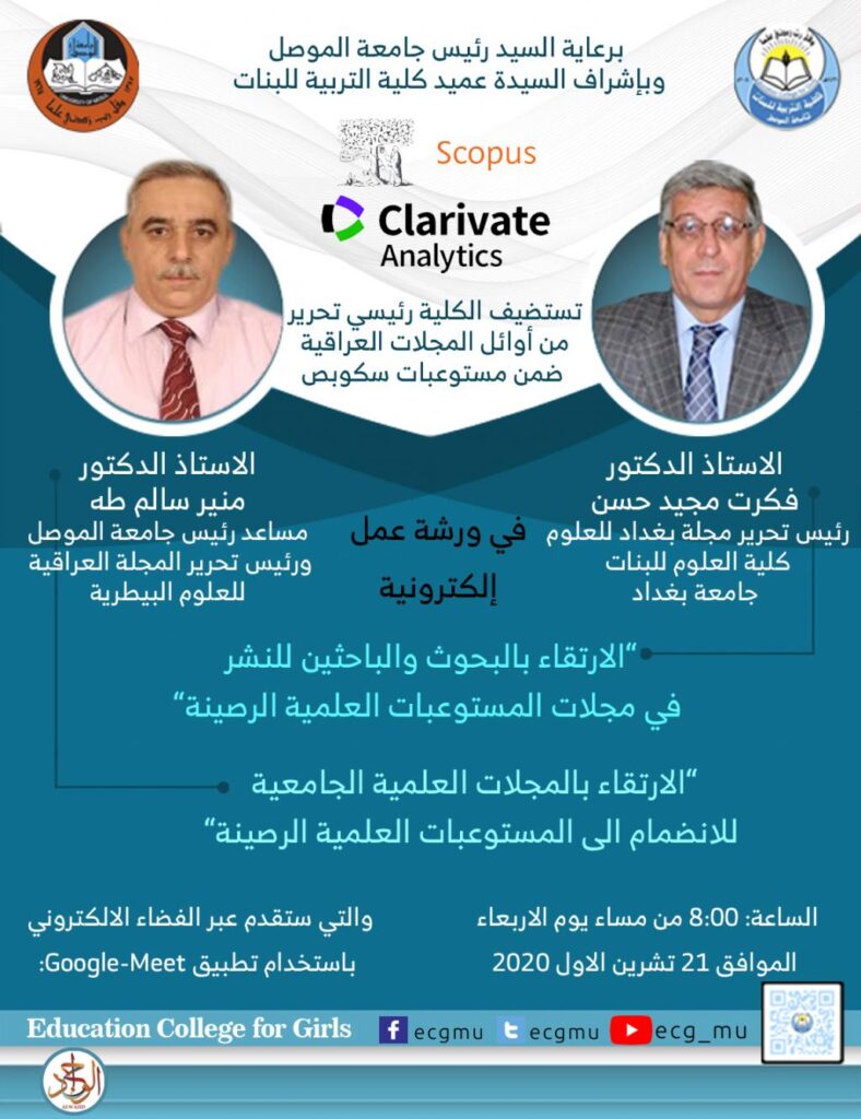 شعبة الدراسات العليا / كلية التربية للبنات تعلن عن مواعيد الامتحان التنافسي للمتقدمات لدراسة الماجستير في أقسام (علوم الحياة، الكيمياء، اللغة العربية، التربية البدنية وعلوم الرياضة)، وحسب الجدول المرفق، مع ملاحظة النقاط التالية:- يبدأ الامتحان الساعة التاسعة صباحاً.- على جميع المتنافسات ابراز الاستمارة المدققة وهوية الاحوال المدنية قبل بدء الاختبار.- تكون مقابلة المتقدمات بعد الامتحان مباشرة.