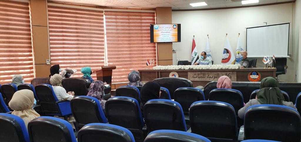 قدم الدكتور احمد مظفر محمد مسؤول وحدة فحص الاستلال النصي لرسائل طالبات الدراسات العليا في كلية التربية للبنات ورشة عمل عن برنامج (Turnitin) العالمي لفحص الاستلال النصي، وذلك يوم الخميس ١٧ حزيران ٢٠٢١، وبمشاركة طالبات الدراسات العليا في قسم التربية البدنية وعلوم الرياضة، وبحضور السيد رئيس قسم التربية البدنية وعلوم الرياضة الأستاذ المساعد الدكتور ثابت حمودات والتدريسين في القسم كل من: السيد م. سلوان طلال و السيد م. أحمد لؤي. تم عرض اهم المفاهيم المتعلقة بهذا الموضوع ومنها النزاهة الأكاديمية والعلمية والأمانة العلمية وخيانة الأمانة العلمية ومفهوم الأحتيال والأنتحال والأستلال والأقتباس، وكيف تُميز الطالبة بين هذه المفاهيم. وفي المحاضرة الثانية تم تعريف الطالبات بتعليمات وضوابط وزارة التعليم العالي والبحث العلمي فيما يخص معايير ونسب الأستلال النصي لرسائل طالبات الدراسات العليا، وبينَ لهُن النسب المسموح بها حسب معايير وضوابط الوزارة.