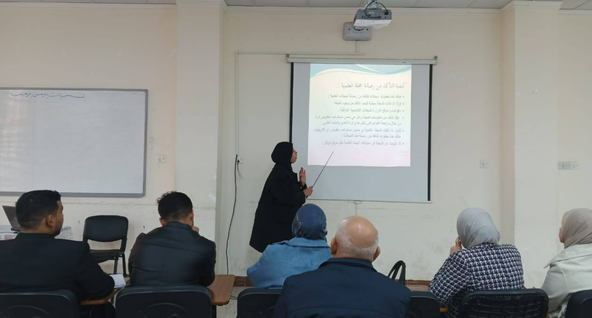 وهدفت الورشة إلى تزويد الطلبة بالمعرفة اللازمة لاختيار المجلة العلمية المناسبة لنشر بحوثهم كلٌّ حسب اختصاصه، مع توضيح المؤشرات المعتمدة للتحقق من رصانة المجلات، وآليات تجنّب المجلات غير الرصينة، بما يعزز جودة النشر العلمي ويرتقي بالمستوى البحثي لطلبة الدراسات العليا.