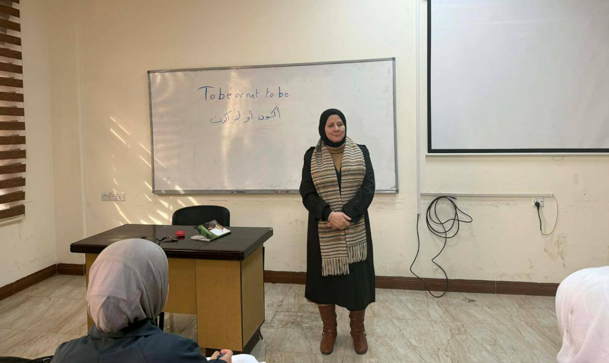 قدّمت الدكتورة آلاء صلاح الدين محاضرة علمية لطالبات المرحلة الأولى في قسم اللغة الإنكليزية، يوم 14/12/2025، بعنوان «To Be or Not to Be – أكون أو لا أكون»، وذلك ضمن الأنشطة التعليمية الهادفة إلى تعزيز الوعي الفكري وبناء الشخصية الأكاديمية لدى الطالبات في جامعة الموصل.
