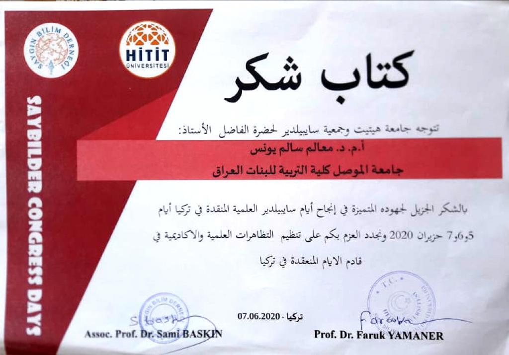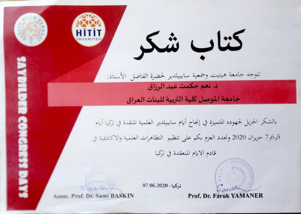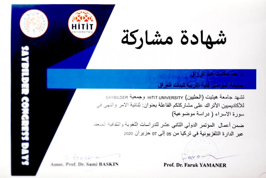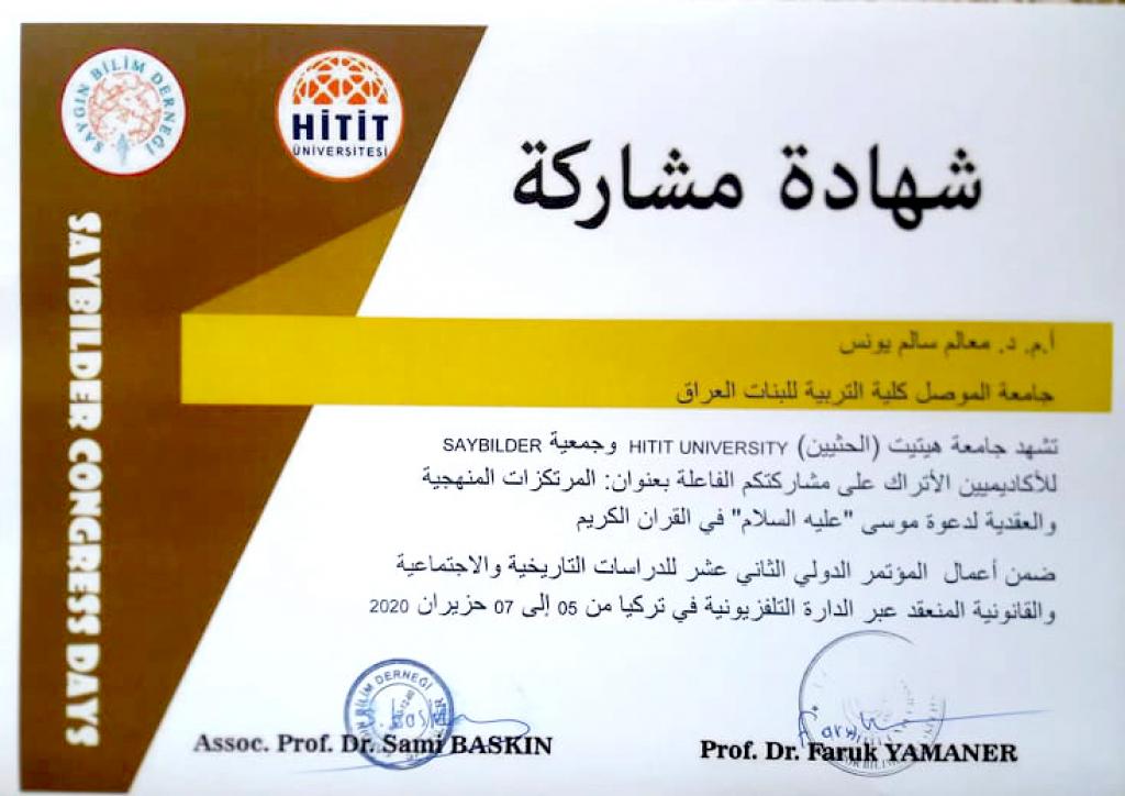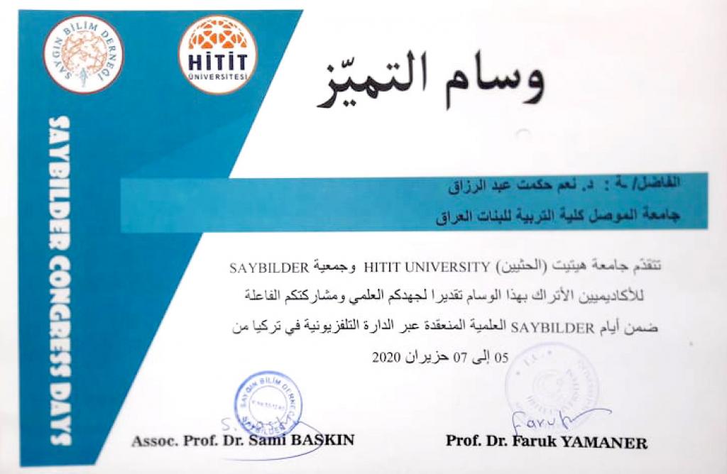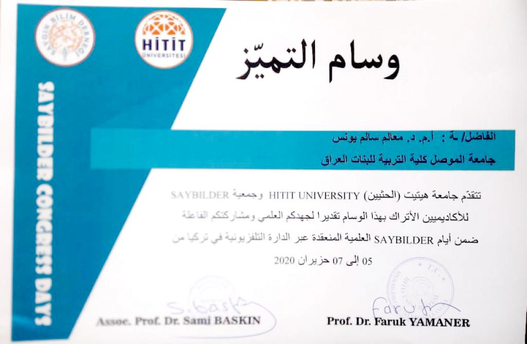 شاركت كل من الاستاذ المساعد الدكتورة معالم سالم يونس والمدرس الدكتورة نعم حكمت عبد الرزاق التدريسيتان في قسم علوم القرآن والتربية الاسلامية في كلية التربية للبنات في موتمر هتيت الثالث عشر في تركيا بالقاء بحثيهما العلميين، اذ حصل كل منهما على وسام التميز فضلا عن كتب شكر وشهادات تقديرية على مشاركتهن.اذ تناول بحث أ.م.د. معالم سالم والموسوم بـ”المرتكزات المنهجية والعقدية لدعوة موسى (عليه السلام) في القرآن الكريم” سيرة سيدنا موسى عليه السلام الذي كان يلقب بكليم الله تعالى واحد اولى العزم من الرسل ،قدم لنا منهجا واضحا في الدعوة الى الله وكان نموذجا فذا للداعية الذي لايحيد عن عقيدته السمحاء ،مع اخذه بكل اسباب نجاح الدعوة الى الله ،في بحثنا هذا سنبين المرتكزات المنهجية الومنهيةوالعقدية لدعوته كما بينها لنا القران الكريم.بينما تناول بحث د.نعم حكمت والموسوم بـ”ثنائية الامر والنهي في سورة الاسراء (دراسة موضوعية)” ان القران الكريم هذا الكتاب الخالد ابتنى على الاحكام والمواعظ والحكم ،فقد ارسى لنا جوامع الكلم وقواعد الفهم ،وامرنا بامور ونهانا عن امور رحمة بنا ونعمة لنا ،من هذا المبدأ ارتأيت ان ابحث عن ثنائية الخطاب القراني القائمة على اسلوبي الامر والنهي في نفس الاية الكريمة ،وذلك لاظهار بلاغة القران الكريم وبراعة الاسلوب والاعتدال في الخطاب القراني وقد اظهر البحث ان في اجتماع الامر والنهي في موطن واحد من الاية الكريمة ماهو الا دليل على توسعة الشريعة واعتدالها فيما فرص الله تعالى فيها على اختلاف هذه الاحكام.مبارك للكلية هذا الانجاز والى مزيد من الابداع والتميز.