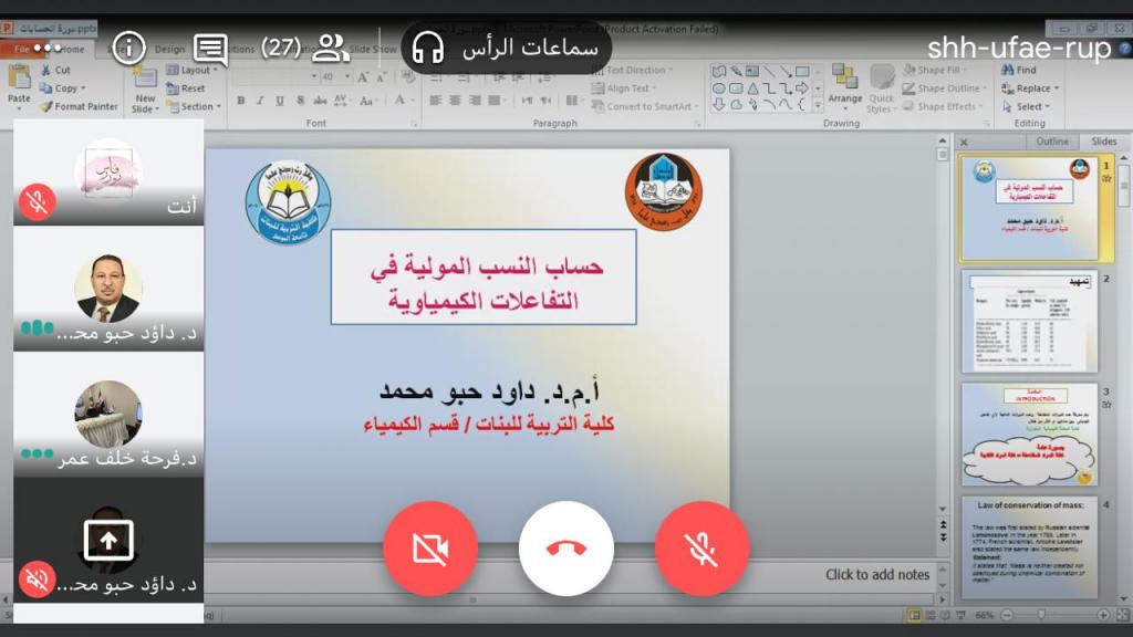 المحاضرة الاولى: ا.م.د داود حبو محمد (حساب النسب المئوية في التفاعلات الكيمياوية)