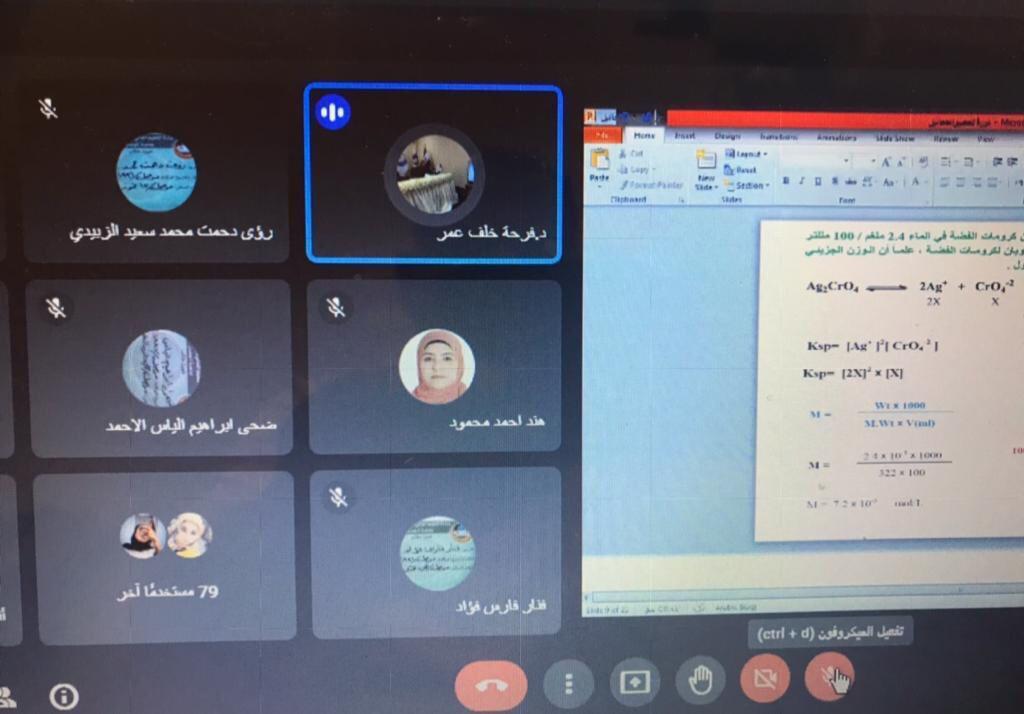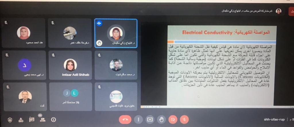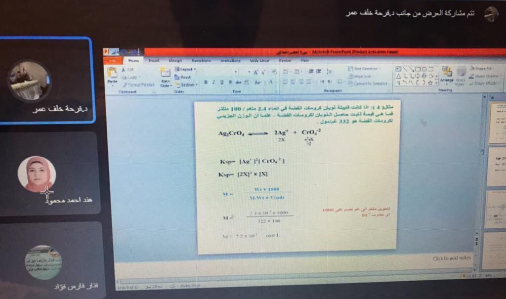 قسم الكيمياء يقيم الدورة العلمية الالكترونية الموسومة “دورة الحسابات الكيميائية للمحاليل”