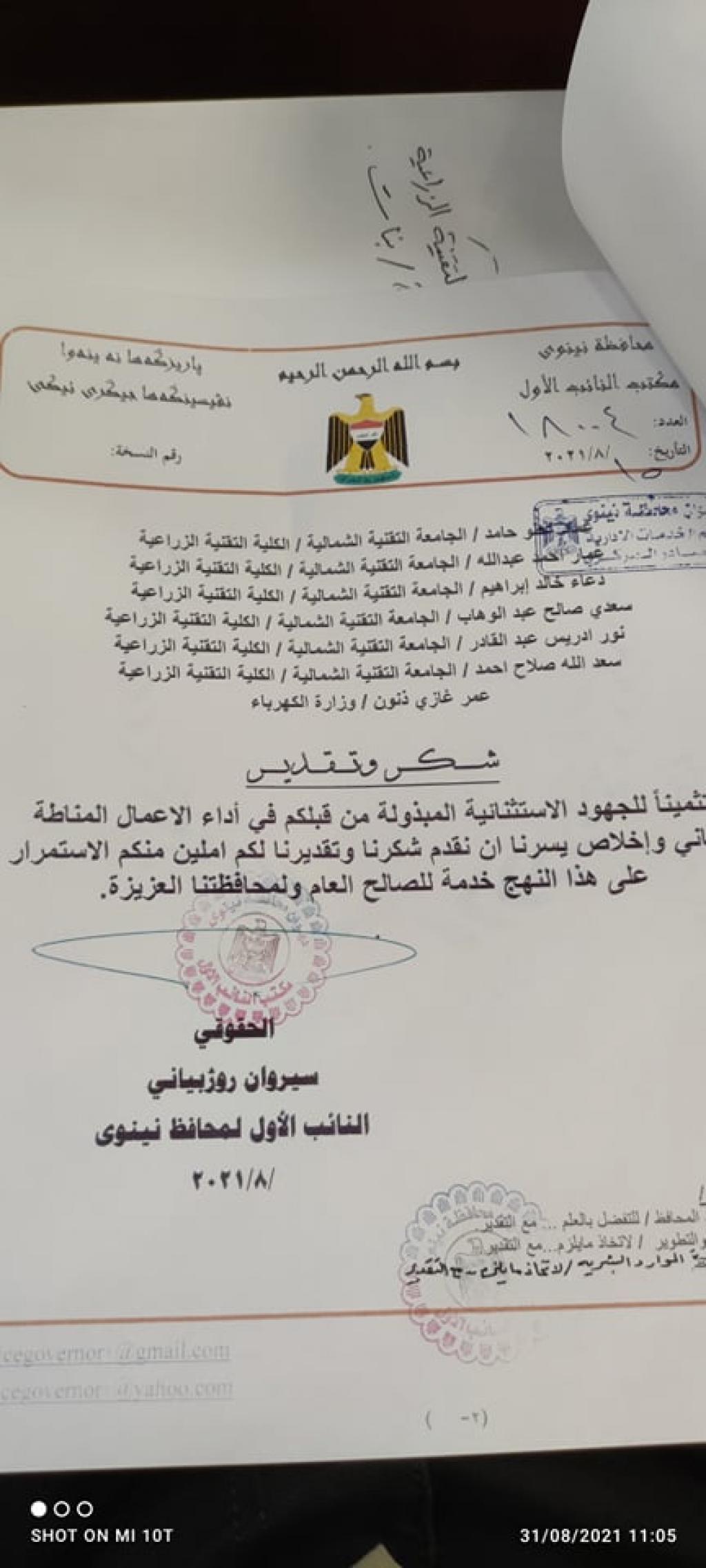 ضمن نشاطات اساتذة كلية التربية للبنات، حصل الدكتور زياد مظفر سعيد التدريسي في قسم علوم القرآن والتربية الاسلامية على كتاب شكر من ديوان مجلس المحافظة، وذلك للمشاركة في أعمال اللقاء الحوراي حول النهوض بالواقع الخدمي لمدينة الموصل وتقديم مقترحات لتنشيط العمل التطوعي وتحسين البنى التحتية، يأتي هذا اللقاء ضمن خطط رئاسة الجامعة في التعاون مع مؤسسات الحكومة المركزية خدمة للمدينة وأهلها، اذ تم التواصل بين ديوان محافظة نينوى مع جامعات المحافظة، ومشاركة لفيف من أساتذة الجامعة التقنية الشمالية فضلاً عن الكفاءات العلمية في الموصل، كما تم تقديم عدة مقترحات؛ وهي حاليا في طور الدراسة في مديريات ديوان محافظة نينوى وقد لاقت الاقتراحات قبولا واستحسان اللجان المختلفة.
