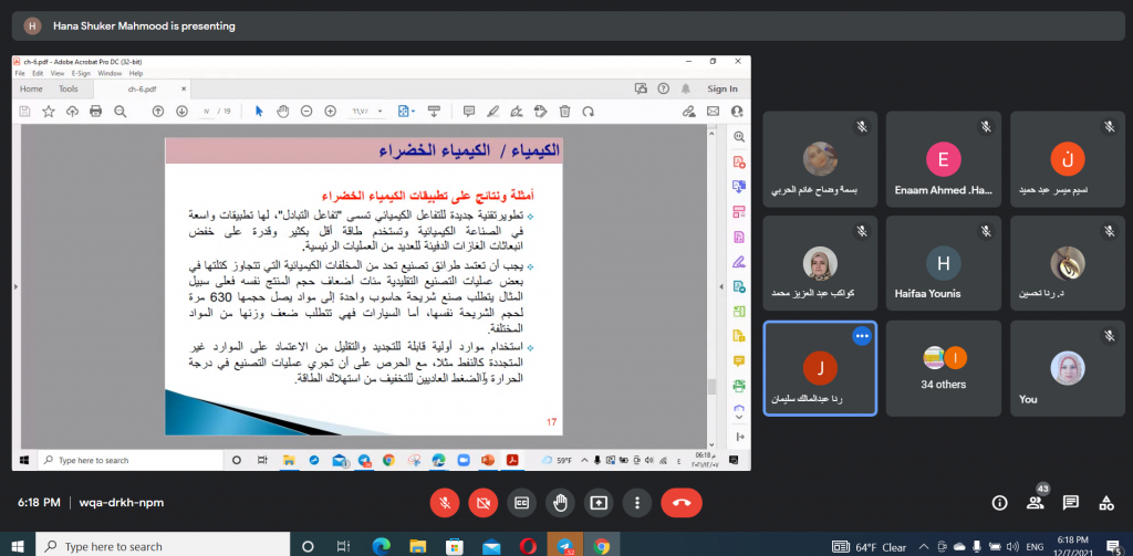 كلية التربية للبنات تقيم دورة عن الكيمياء الخضراء و معالجة النفايات