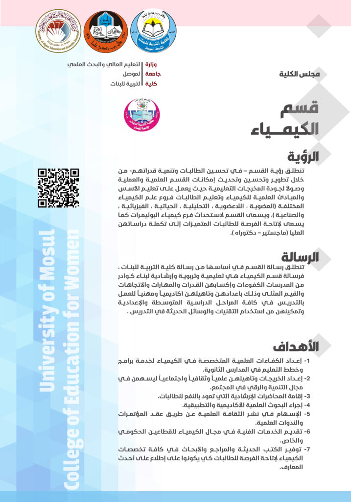 - توفير الكتب الحديثة والمراجع والأبحاث في كافة تخصصات الكيمياء لإتاحة الفرصة للطالبات كي يكونوا على إطلاع على أحدث المعارف