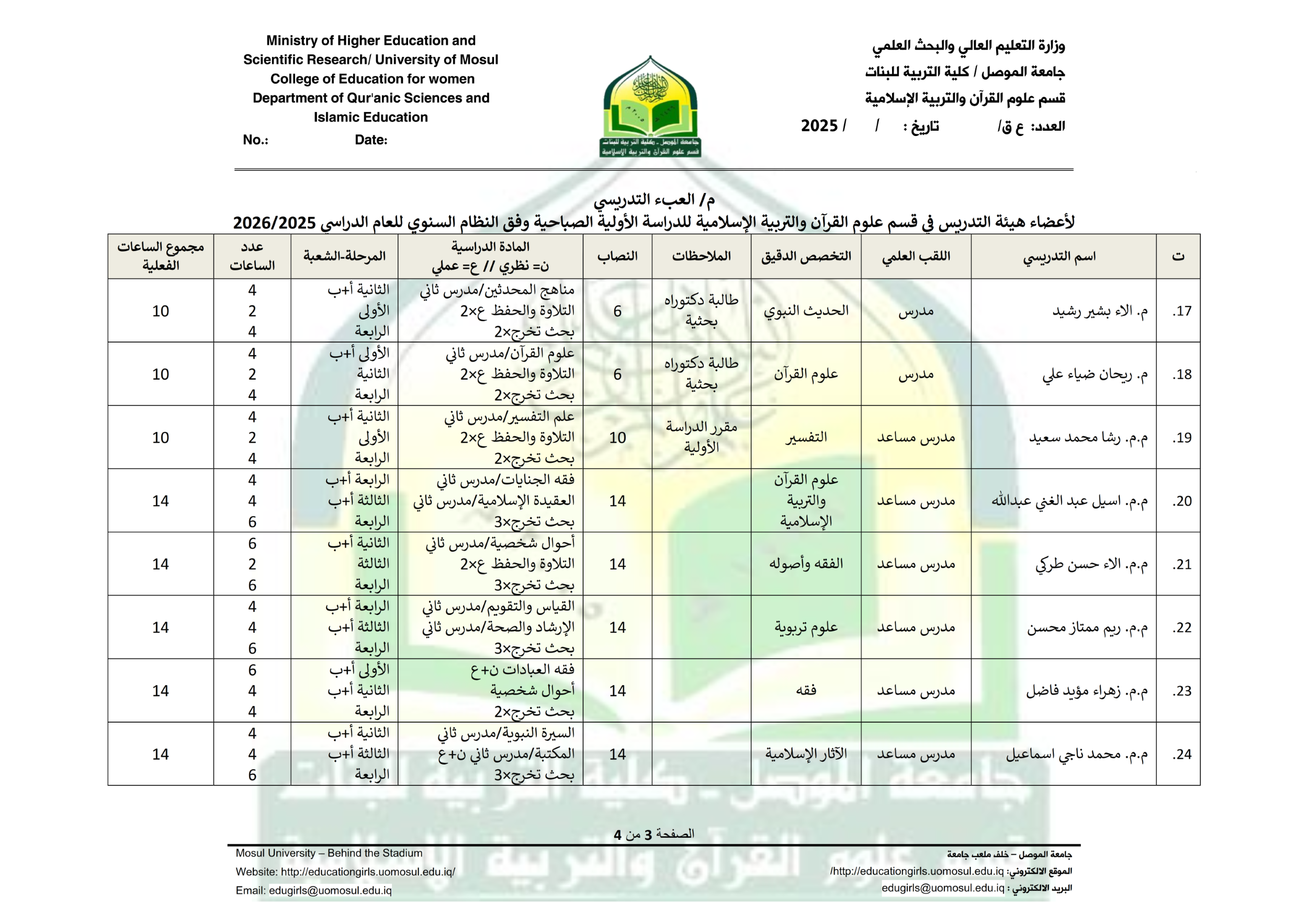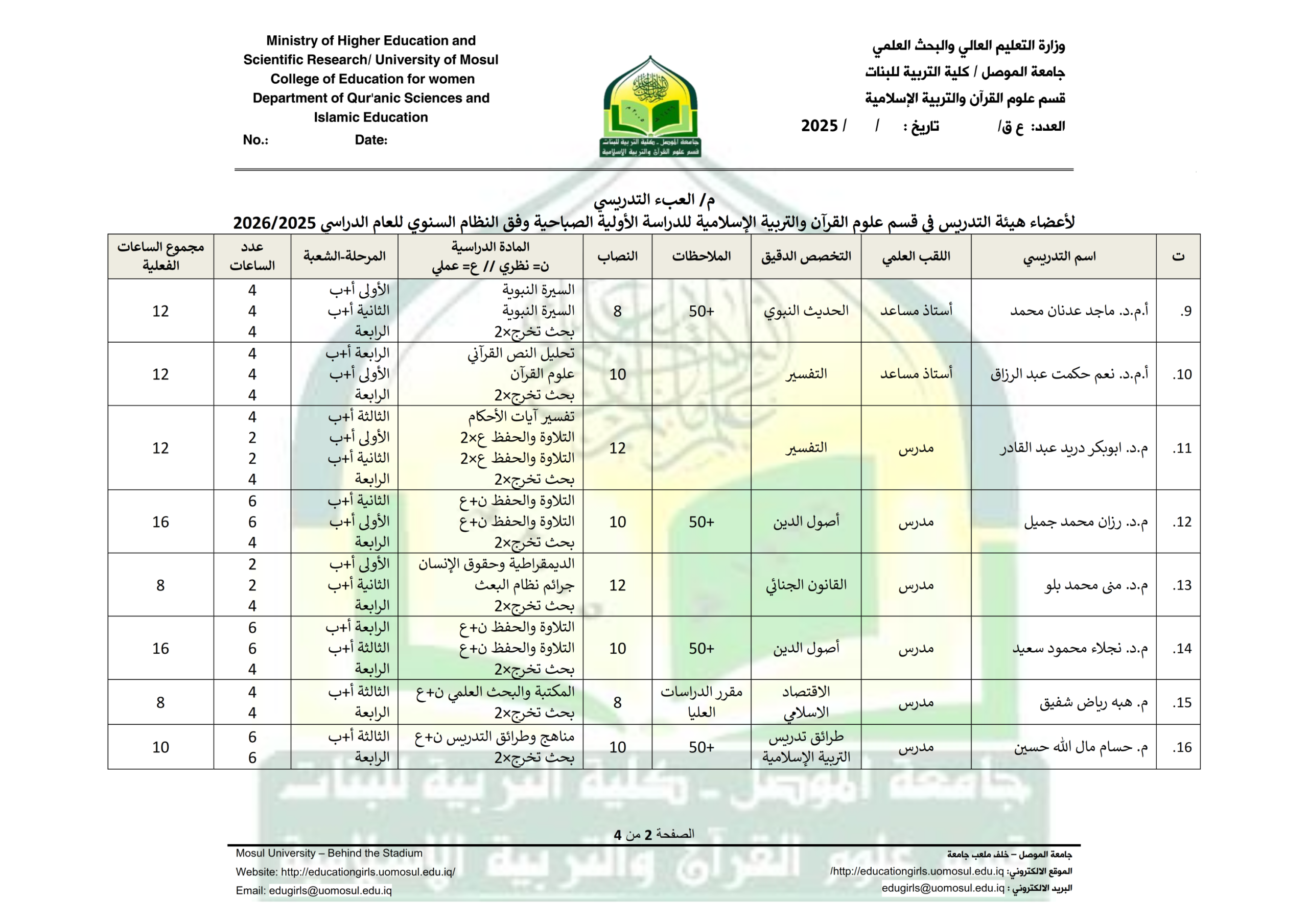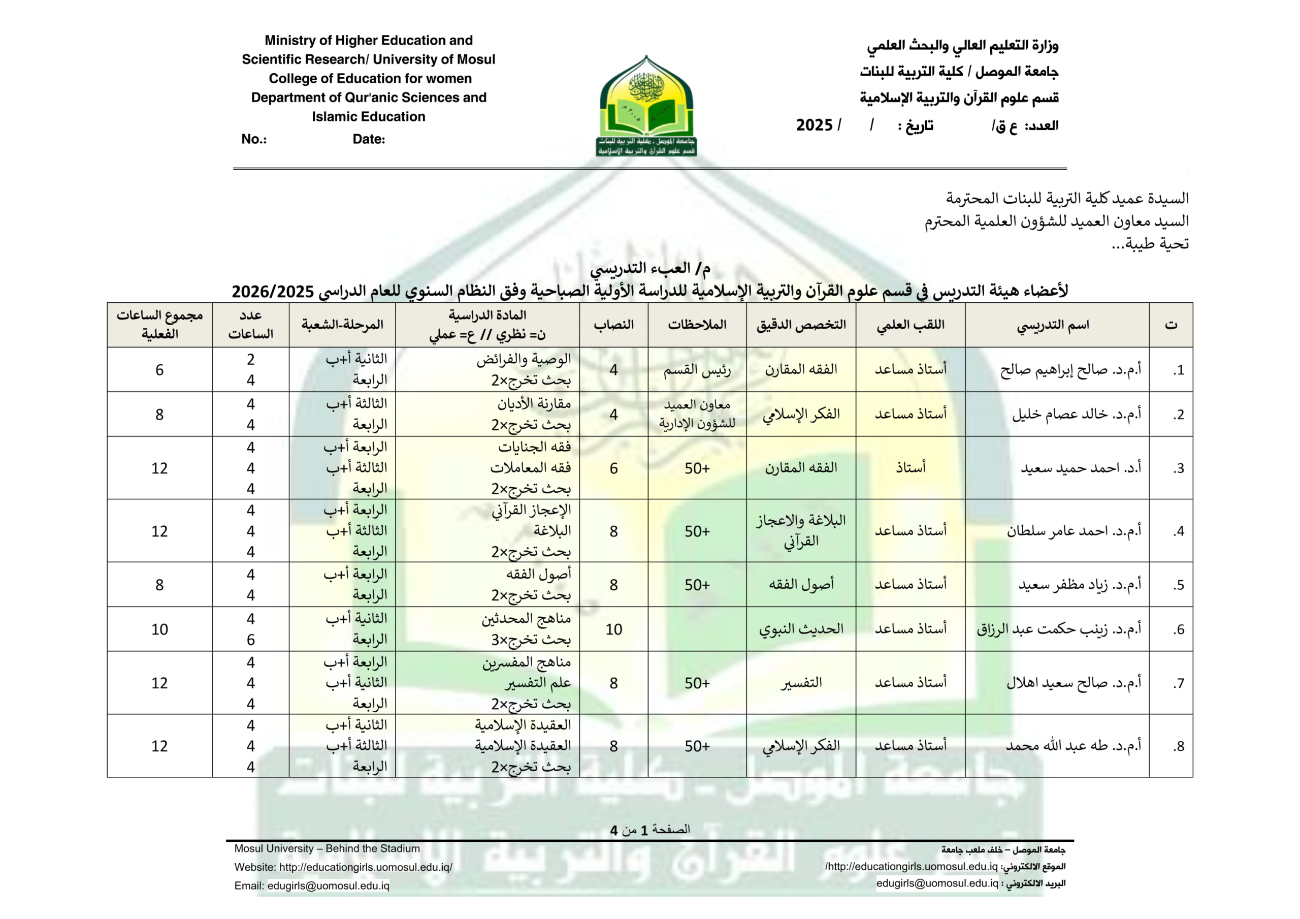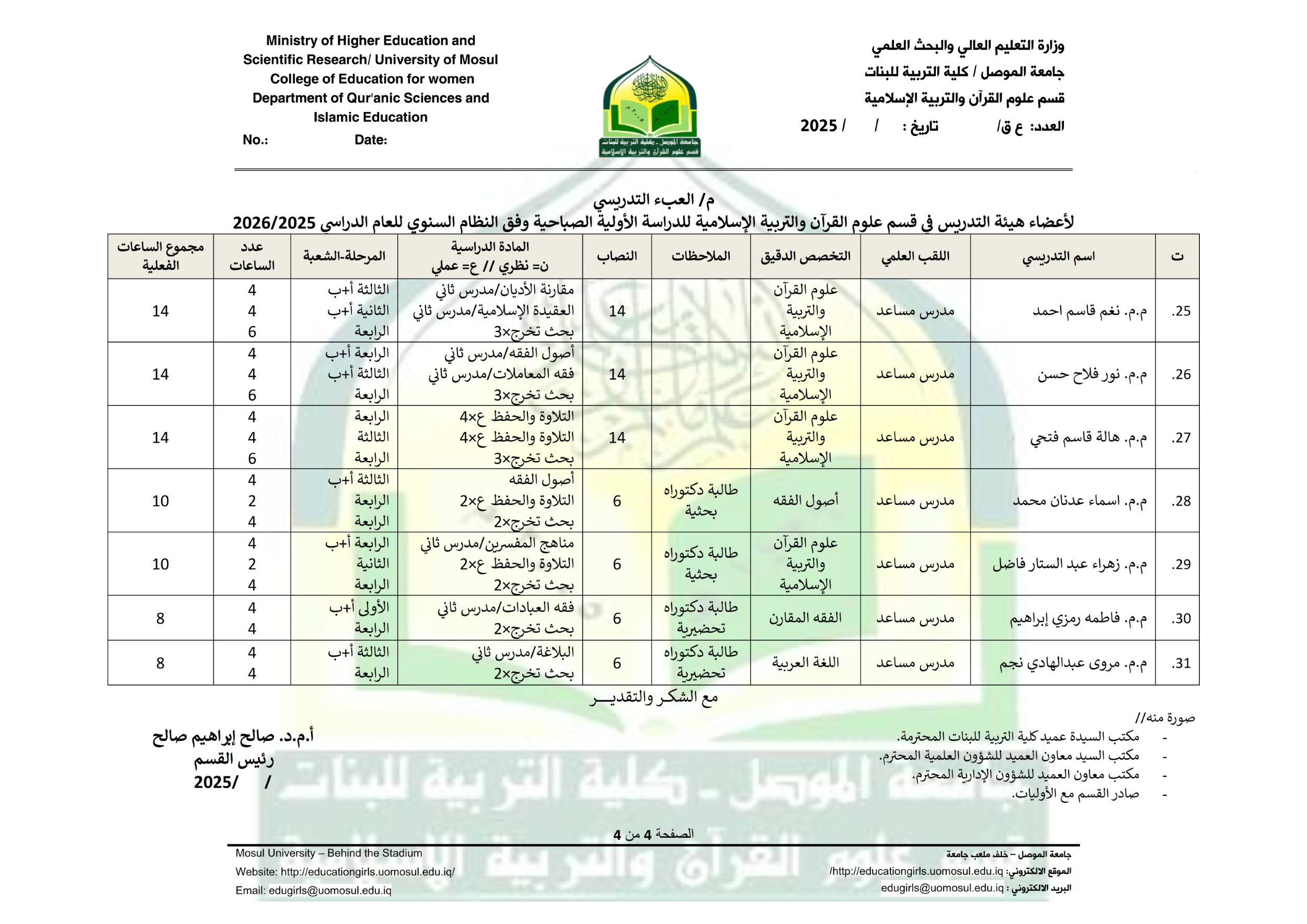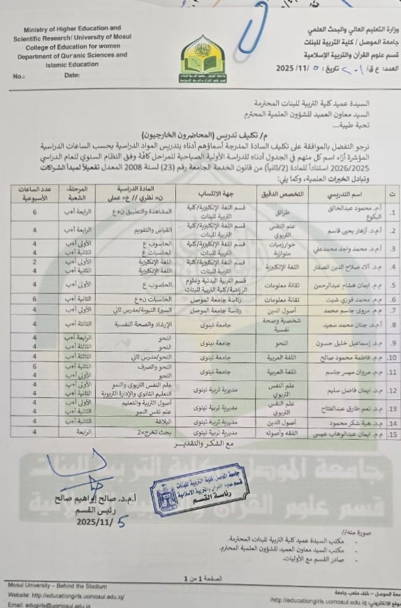 محاضرات الدراسات الأولية لقسم علوم القرآن والتربية الإسلامية